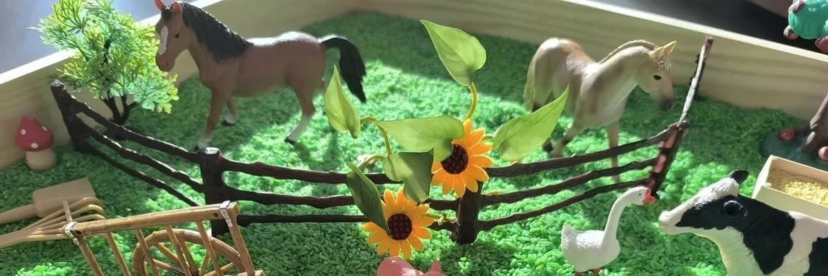 Každý smyslový tác je interaktivní mini svět a jakmile si dítě sedne k tácu, přebírá kontrolu nad svým malým územím a rozhodují, co se tam ten den bude dít. Možná bude chtít nakrmit zvířátka a zahrát si na zahradničení na Farmě, postavit něco z cihel a kinetického písku, na Staveništi, sehrát príbeh s sobí rodinou, nebo si jen nabírat, sypat a mačkat rýži rukama. Všechno záleží na jeho náladě a momentální chuti k objevování.