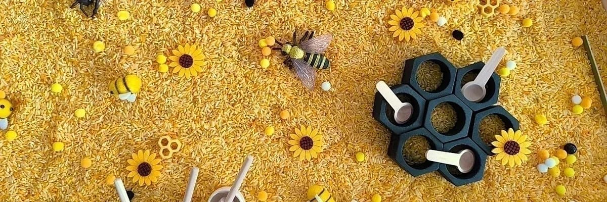 Každý smyslový tác je interaktivní mini svět a jakmile si dítě sedne k tácu, přebírá kontrolu nad svým malým územím a rozhodují, co se tam ten den bude dít. Možná bude chtít nakrmit zvířátka a zahrát si na zahradničení na Farmě, postavit něco z cihel a kinetického písku, na Staveništi, sehrát príbeh s sobí rodinou, nebo si jen nabírat, sypat a mačkat rýži rukama. Všechno záleží na jeho náladě a momentální chuti k objevování.